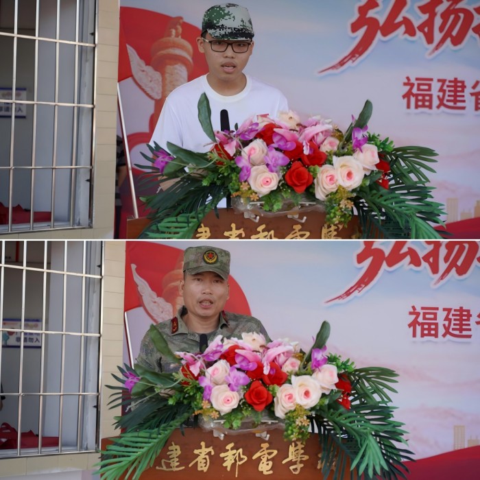 仓山区人武部总教官李振国讲话,他向全体新生阐明国防教育节的重要性和纪律要求,并代表教官宣誓将“科学组训、文明施训、以身作则”,与同学们风雨同舟、并肩前行。