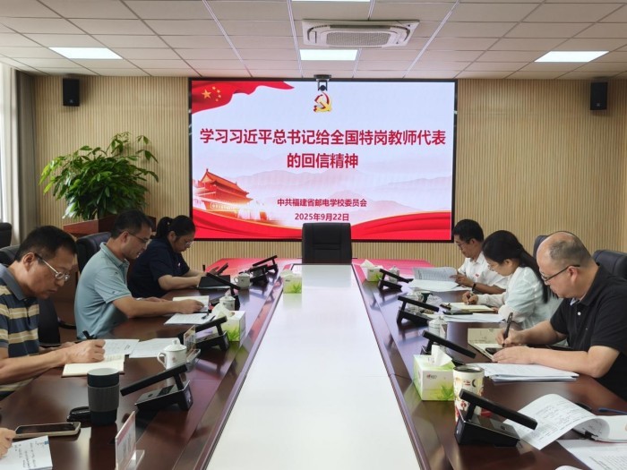 9月22日,福建省邮电学校召开党委会,组织“第一议题”学习贯彻习近平总书记在纪念中国人民抗日战争暨世界反法西斯战争胜利80周年大会上的重要讲话以及给全国特岗教师代表的回信精神等8项内容。校党委书记包晓晖主持会议并讲话。