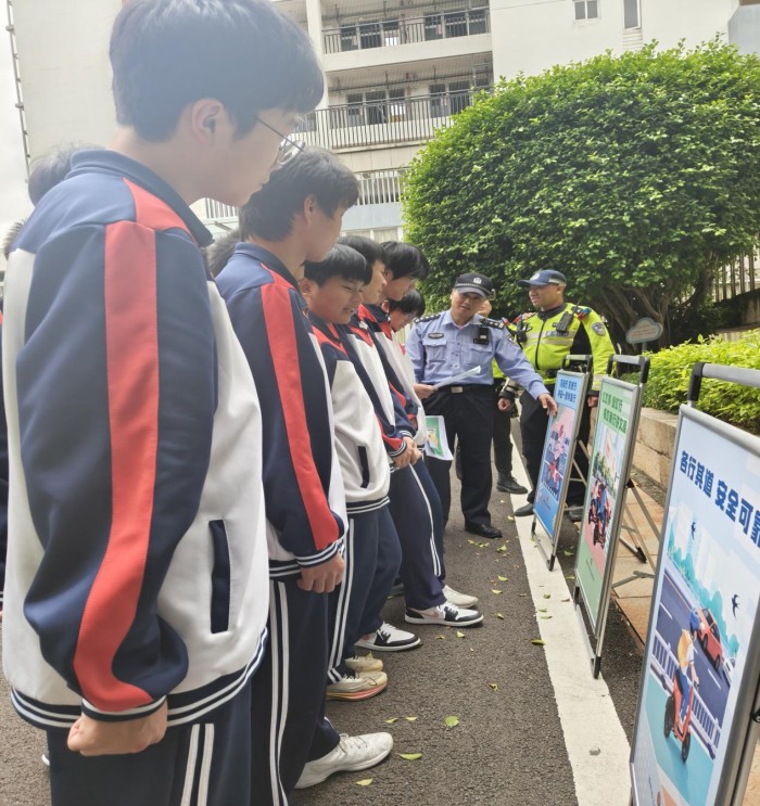 会后,民警们结合交通安全知识展板,向同学们面对面讲解了交通标志识别、安全出行规范等注意事项,引导大家牢记交通安全知识。