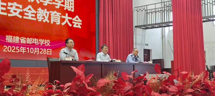 为切实增强走读生安全防范意识,保障学生人身与财产安全,维护校园和谐稳定,10月28日中午,我校在礼堂召开2025年秋季学期走读生安全教育大会。会议由学生与保卫科副科长刘江峰主持,校党委委员、副校长林鹏,福州市仓山区上渡派出所李华警官及专业教学部团总支负责人出席会议,全体走读生参加。